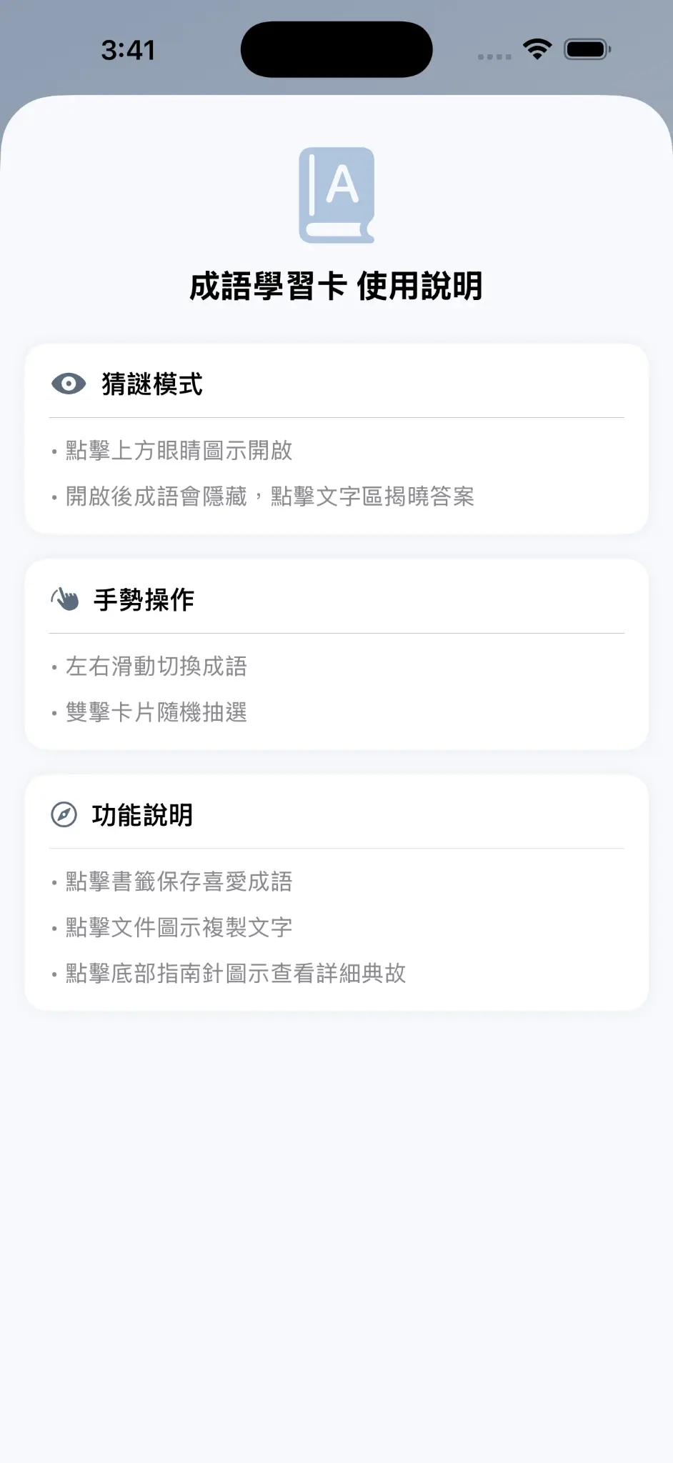 身為一位熱愛創造的開發者,我總在思考:如何讓學習成語不再是枯燥地翻閱厚重辭典,而是能像滑動卡片般,成為一種充滿驚喜與美感的日常習慣?基於這個單純的初衷,《成語學習卡》這款 iOS Apps 應運而生。